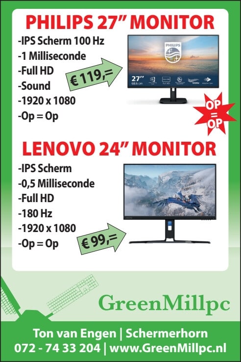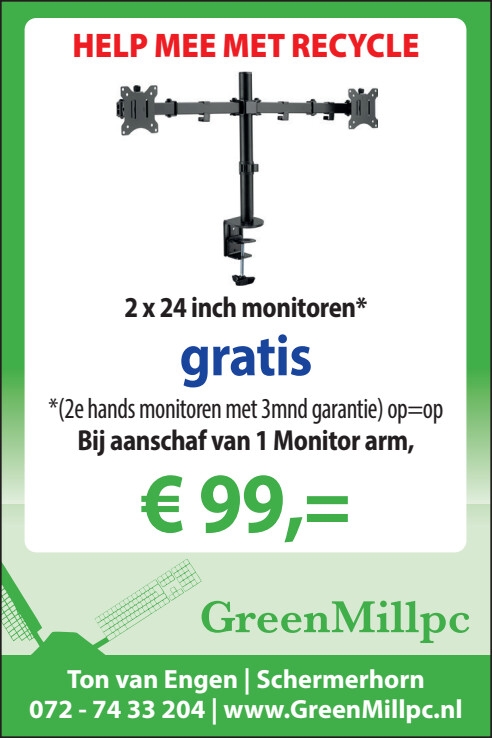 Lever alle elektronica dan in bij GreenMillpc, Oosteinde 17A in Schermerhorn. Elke dag open van 13:00 tot 18:00 uur.(helaas ook op koningsdag gesloten).